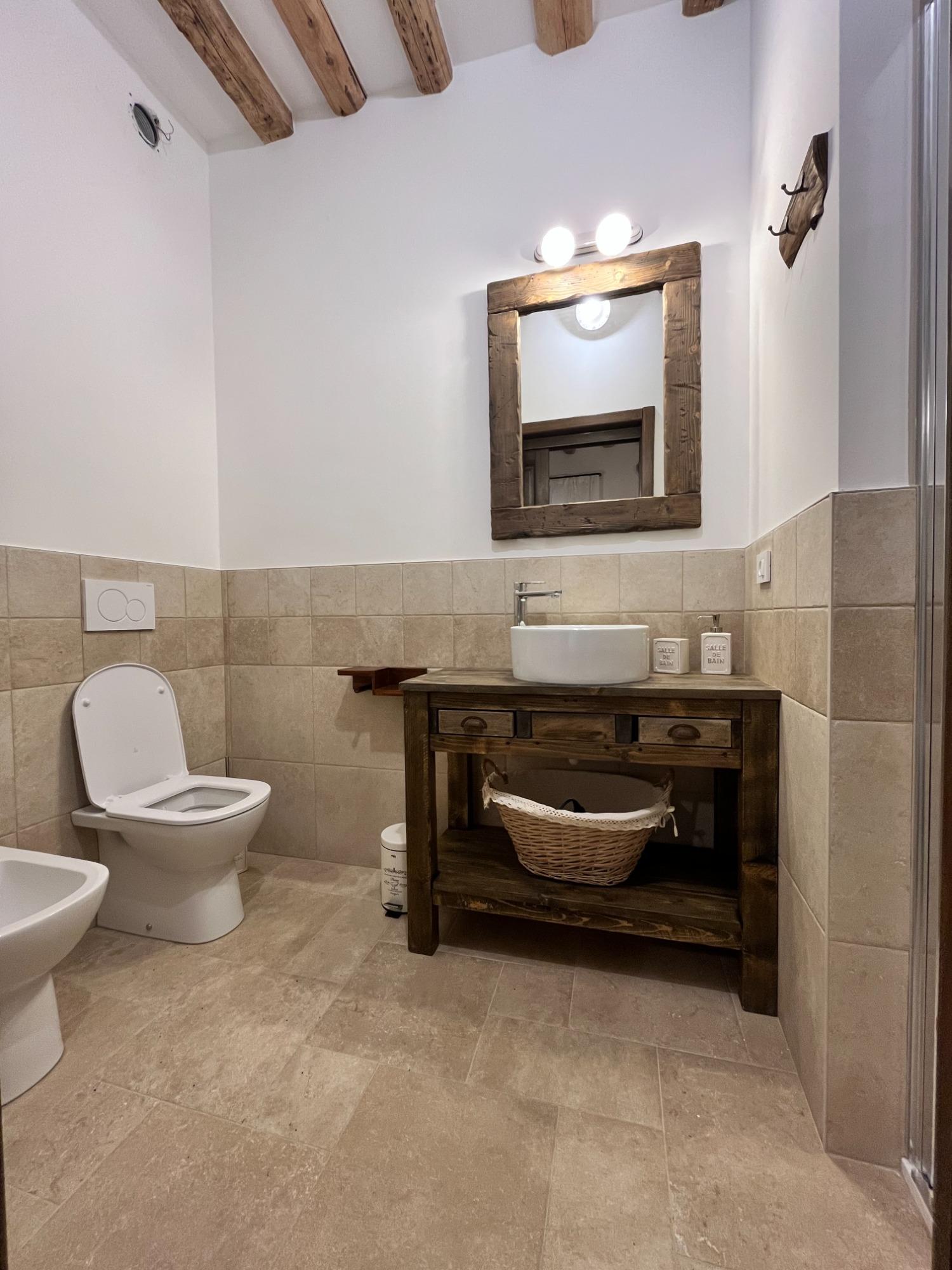 Ci sono tre camere doppie, ognuna con bagno privato, arredate con mobili d'epoca e pezzi artigianali fatti in famiglia.